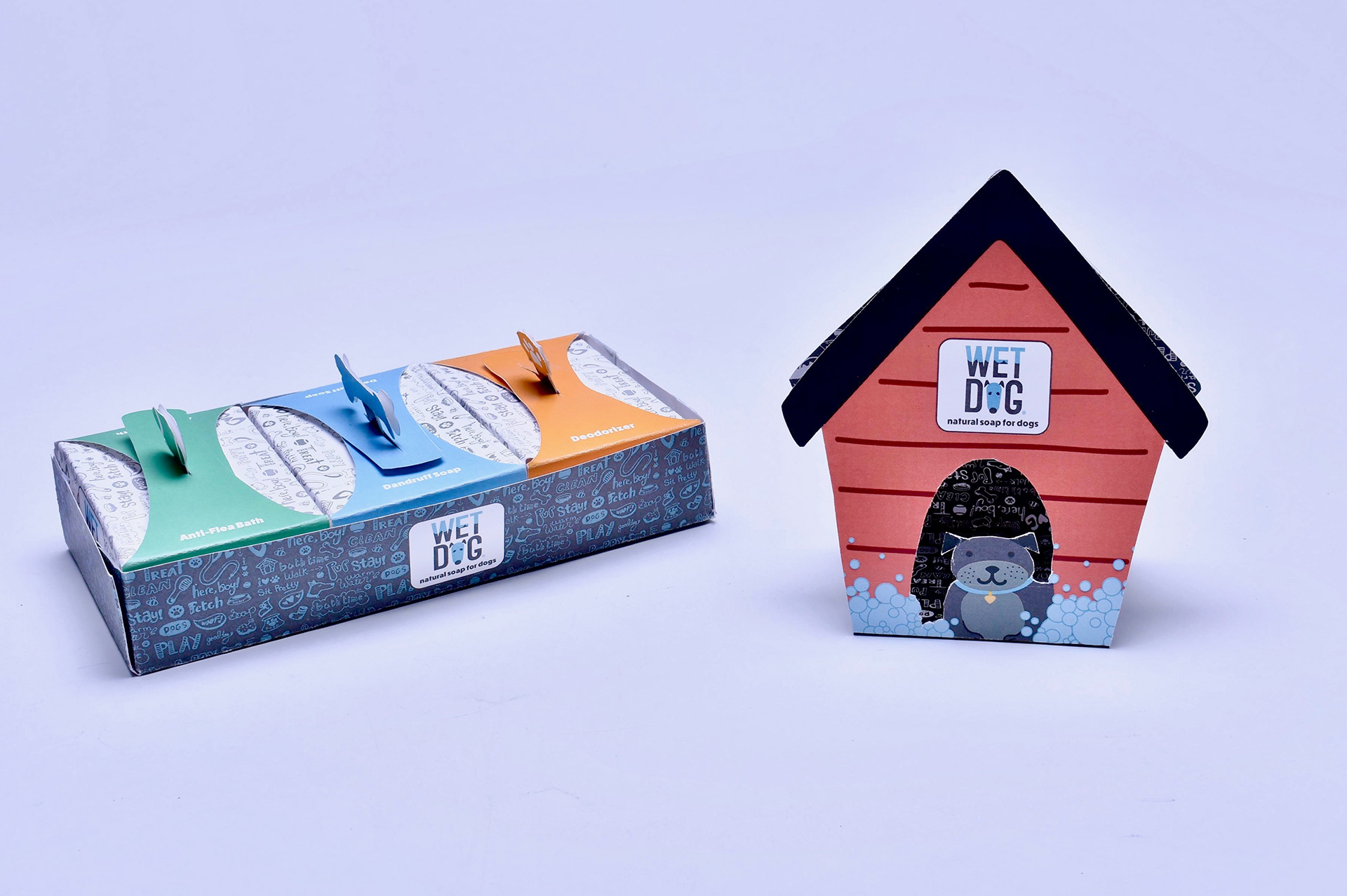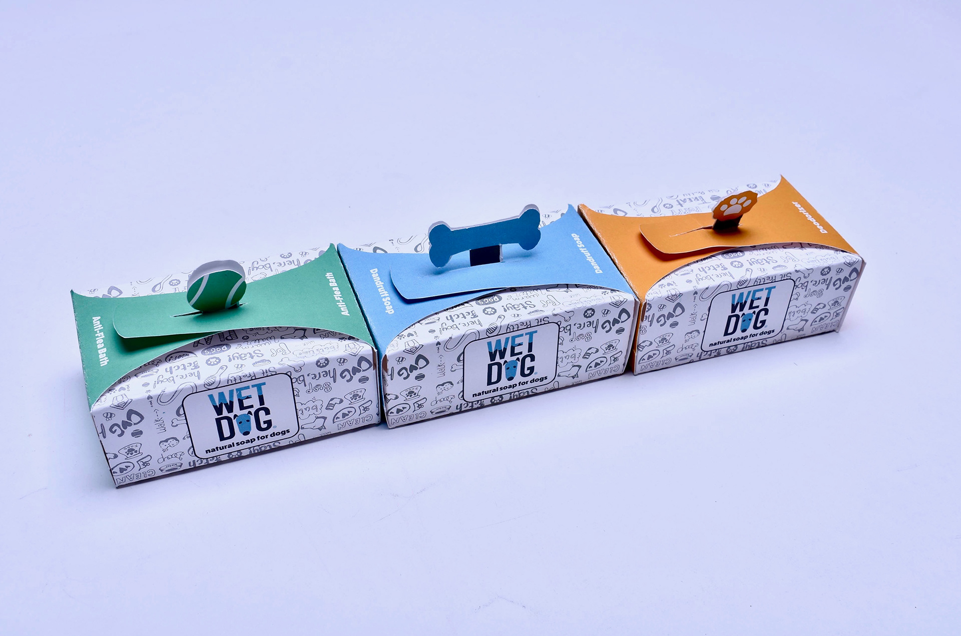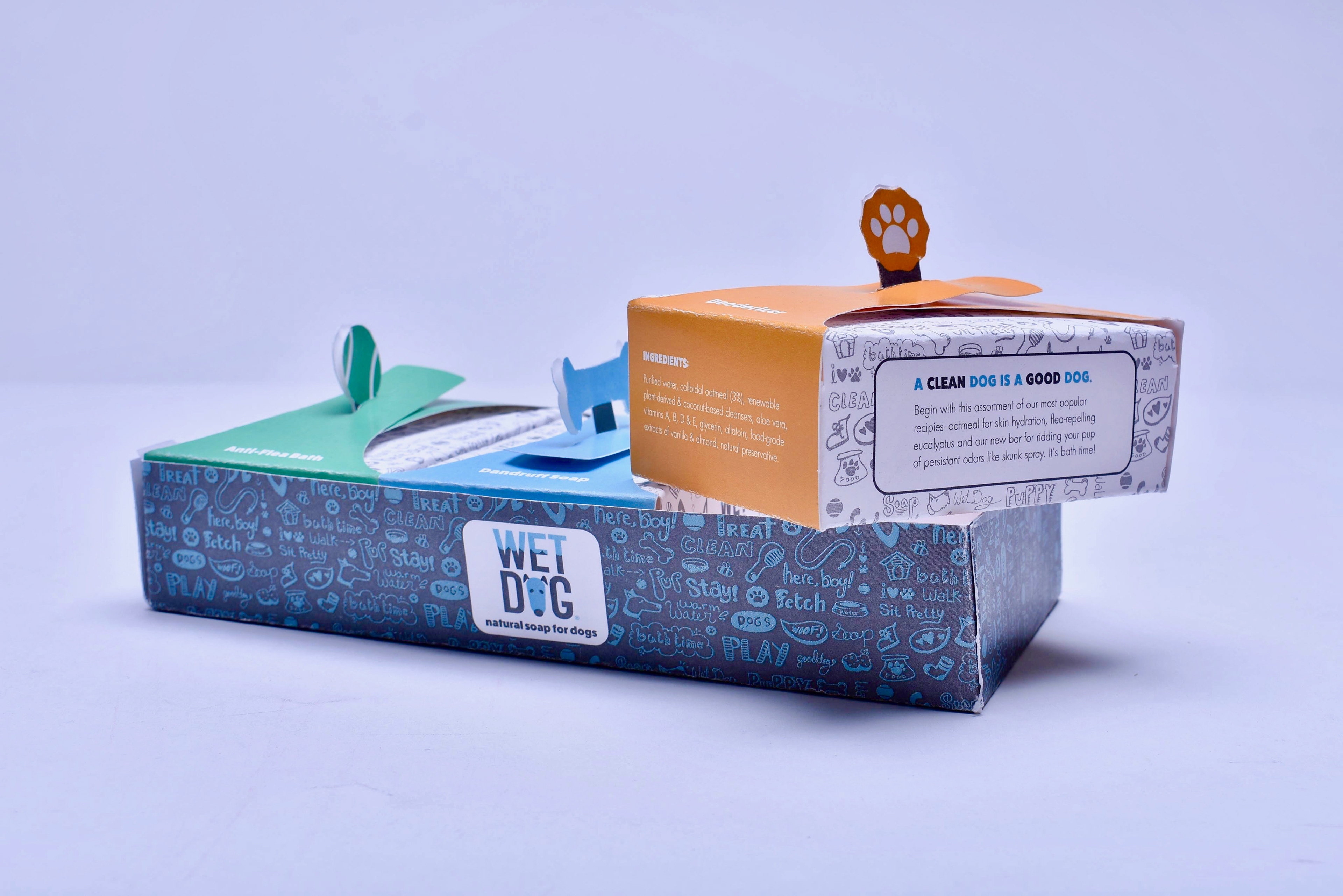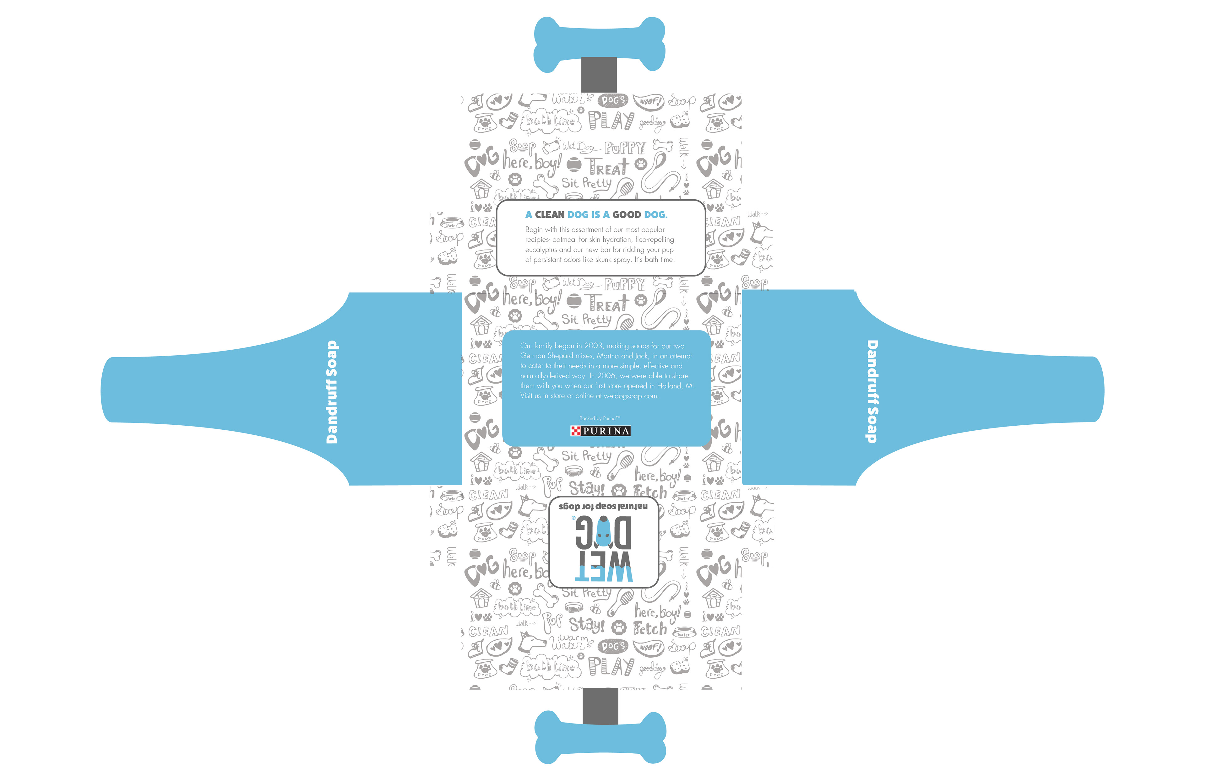 This was my final package design project, a three-piece series of dog soaps for specific uses- Anti-Flea Bath, Deodorizer, and Dandruff Soap. The project also includes a table tent for in-store display.